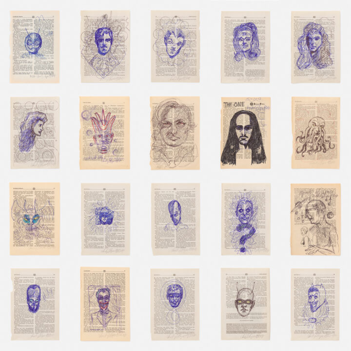 UNCONFIRMED EQUATIONS, 2023, 12″ Vinyl LP, music by Andy Hope 2030, recorded by Philipp Janzen, produced & mastered by Jens-Uwe Beyer, each with a unique drawing on a book page by Andy Hope 1930, 20 x 15 cm, signed, dated, numbered, edition of 20
